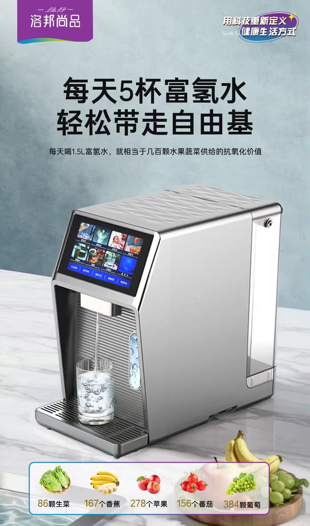 3、富氢水机:精准切入中老年养生、日常饮水调理等刚需场景,依托“健康刚需+轻资产扩张”的优势,可快速对接昆明社区、便利店、康养机构等渠道,投资门槛低、盈利见效快。采用SPE离子膜电解技术与纳米气泡制氢专利技术,氢浓度远超行业平均水平,全程零化学添加,达到母婴级安全;搭载RO反渗透净滤系统与封闭式灭菌双效净化系统,杀菌率99.99%,杜绝二次污染;3秒速热、环保制冷,支持7档水温、4档精准水量调节,配备可视化触摸大屏与快旋式换芯设计,操作简便,同时拥有缓解糖尿病人脱水症状的专属专利,适配昆明家庭、康养机构等多元场景,复购率远超普通快消品,是低成本高回报的优选招商产品。