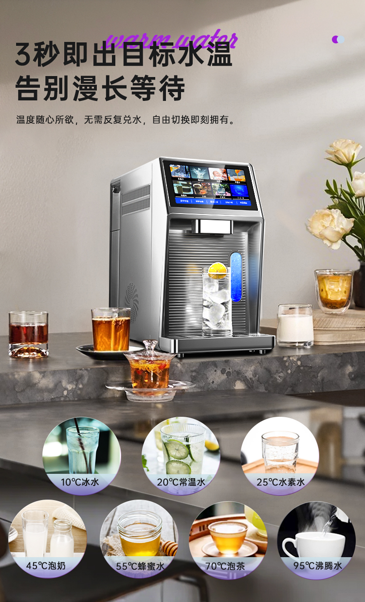 1、智能控温,3秒既热,4档水量,7种功能温度档可选