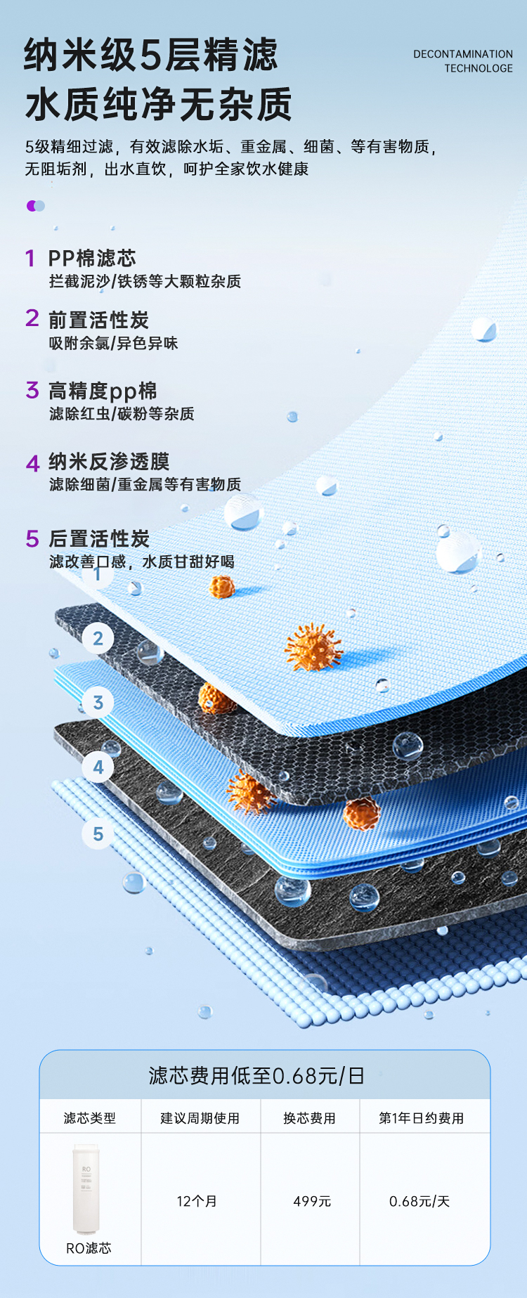 2、RO反渗透五合一净滤直饮,换芯提醒自主更换